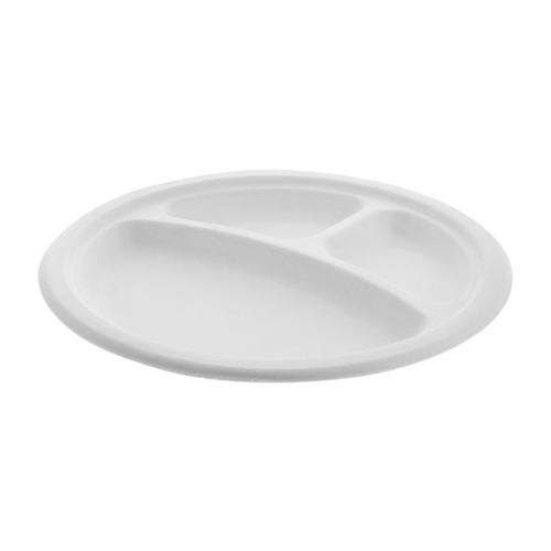 10IN BAGASSSE PLATE ROUND 3COMPARTMENT 50/PK 500/CS