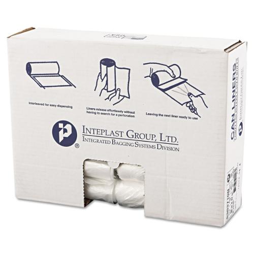 Inteplast Grouphigh-density interleaved commercial can liners, 30 gal, 10 microns, 30" x 37", clear, 25 bags/roll, 20 rolls/carton
