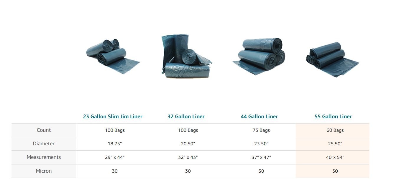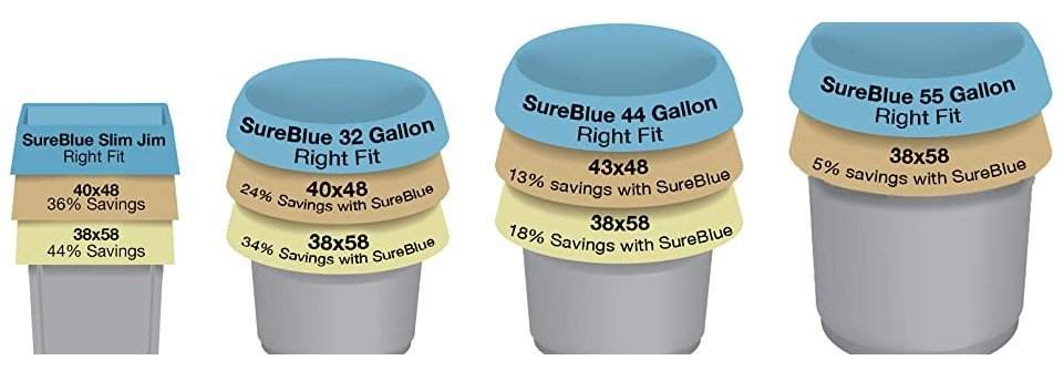 SureBlue come is four(4) convenient sizes: 23 Gallons (Slim Jim Style), 32 Gallons, 44 Gallons, and 55 Gallons.