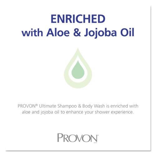 PROVON Ultimate Shampoo and Body Wash is a four-pack of 2000 mL refill bottles dermatologist-tested antimicrobial lotion soap. The SANITARY SEALED refill bottle helps lock out germs. The PROVON product line from GOJO is most suitable for use in long-term care facilities. The PROVON formulation offers ease of use, packaging that supports a homelike environment for patients, and a comprehensive training program for staff. The PROVON skin care program provides a soothing experience for residents and heightened performance for caregivers. This line helps care facilities maintain an effective skin care regimen for bathing and shampooing, perineal care, and proper moisturization with a family of mild products. PROVON products are color-coded by category for ease of storage and selection, with ergonomic shapes and sizes for convenient one-handed use. Using PROVON helps maintain good hygiene, reduces odors, helps prevent skin breakdown, and helps maintain good skin health. GOJO Industries, Inc. manufactures hygiene products, including handwashing, hand sanitizing, and skin care formulations, for outside-the-home settings. GOJO owns and operates the GOJO, PURELL, PROVON, and MICRELL brands for restaurants, auto shops, long-term care facilities, and other industries. GOJO is the inventor of GOJO Original Formula waterless heavy-duty hand cleaner and PURELL hand sanitizer. GOJO headquarters are located in Akron, Ohio, with additional facilities in North and South America, Europe, and Asia.