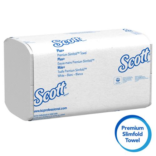 Scott Control provides enhanced hygiene solutions for critical environments. Sometimes the littlest things make the biggest difference. With Scott Control Slimfold Paper Towels, the innovative design means that you can fit premium paper towels in places you may have never thought possible. Now, thanks to a smart fold design (it's smaller than typical M-fold, C-fold or tri-fold hand towels) you can fit a compatible slim dispenser in tight places like a nurses' station, a small classroom washing area, or a behind-the-counter sink at your business. These Scott Control high-performance towels feature exclusive Absorbency Pockets (fast-drying ridges deliver better absorbency) and are folded five times instead of two (like many multi-folds). Don't let the small fold size fool you, though: each towel unfolds to 7.5" x 11.6", giving you enough towel to get the job done. Find a compatible Kimberly-Clark Professional™ dispenser, which will help keep your towels clean prior to use and deliver one-at-a-time dispensing for hygienic hand drying (only touch the towel you use). Thanks to the slim size there's also reduced packaging size, which allows for easy storage of extra towels in cabinet or closets – without the need for bulky boxes. Scott Control Slimfold Paper Towels provide superior hand-drying performance and user satisfaction – it's the name that says premium quality and homelike comfort, no matter how much space you have.