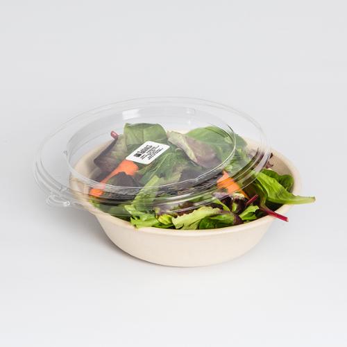 Sabert's environmentally friendly Green collection includes a full line of molded fiber pulp compostable bases with recyclable plastic lids, offering everything from soup bowls and containers to catering platters and plates.