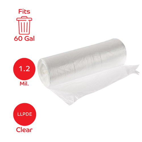 Home Facility Care Liners Non-Proprietary Liners Low Density Berry Plastics Big City Clear LLDPE 58" x 38" X 1.2 Mil Coreless Roll 60 Gal. Can Liner