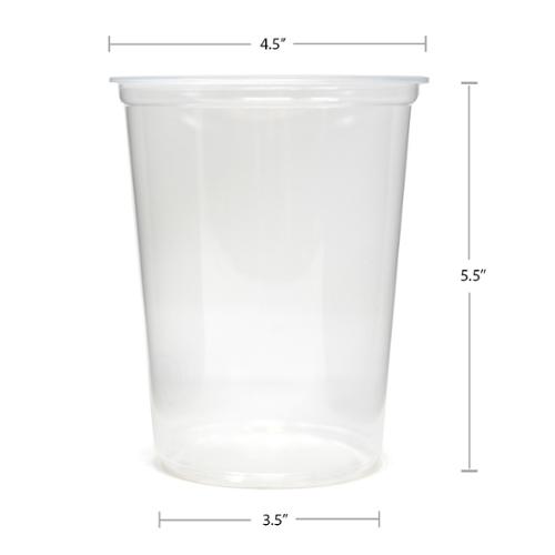 Recessed plug-fit and over-cap lid (printable) compatibility for presentation and application flexibility. Made with material that is microwave safe. Unsusceptible to flavor or odor transfer. Large, flat, and uninterrupted labeling space for strong branding opportunities. Smooth rolled rims for leak-resistant snap-fit lid application and removal.